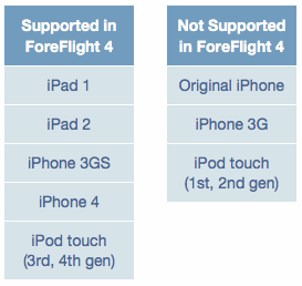 The sky ahead requires breaking ties with older iOS systems and hardware so that we can push forward. The next major version of ForeFlight – version 4 – will require iOS 4 or greater. This means that ForeFlight 4 will only work on iPhone 3GS, iPhone 4, all versions of iPads (iPad 1 and iPad 2), and the last two iPod touch models (3rd and 4th generation) – as well as any new iPhone/iPad/iPod touch models in the future.